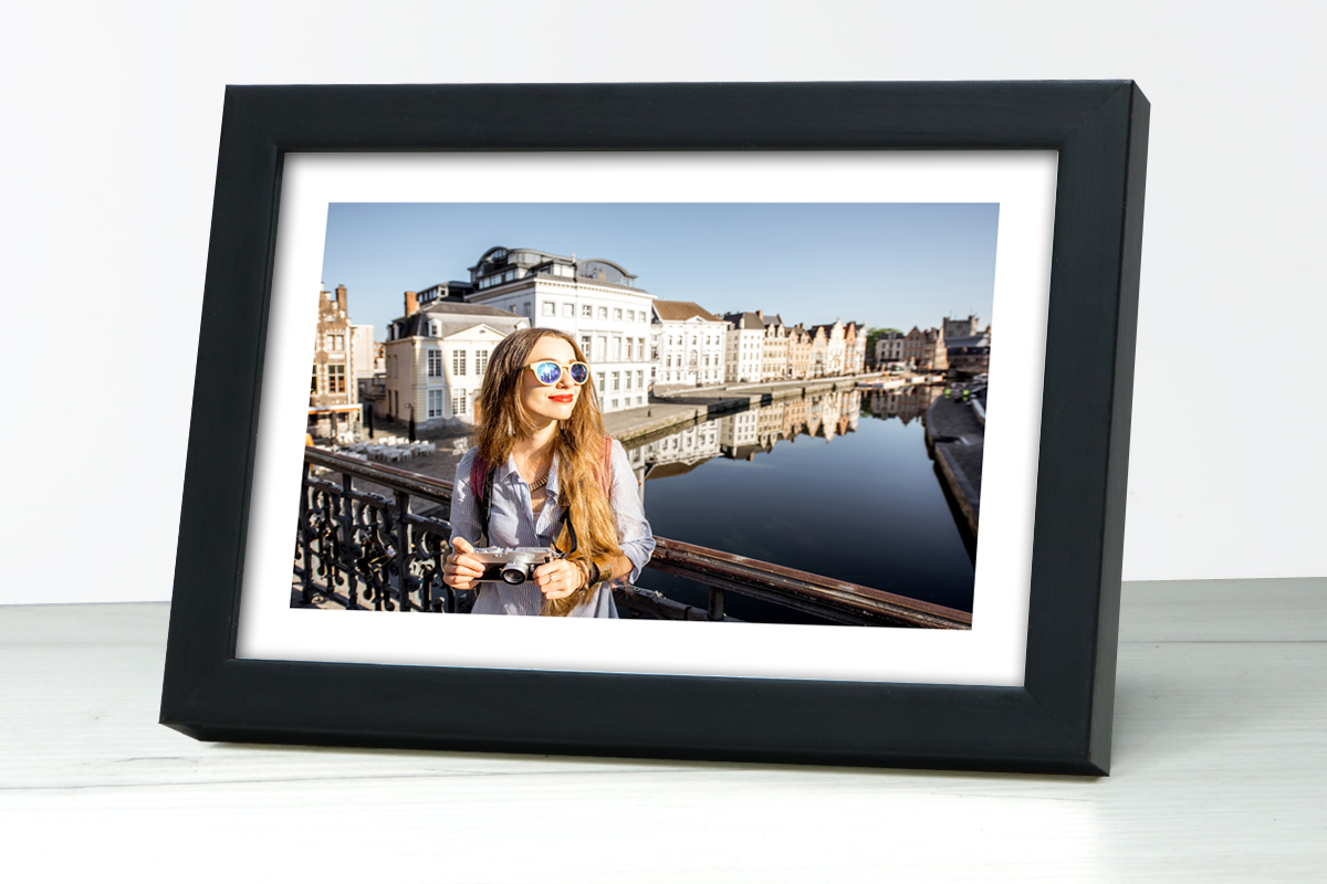 WIR BIETEN KOMPLETTE RAHMEN – sie enthalten Glas, eine Rückwand aus HDF und Aufhänger (kleinere Formate haben eine auf die HDF-Platte aufgesetzte Aufhängung, größere haben an der Platte angebrachte Aufhänger). Alle können hoch- und querformatig präsentiert werden. Produkte bis zur Größe 18×24 haben einen Aufsteller zum Hinstellen. Die Rahmen sichern wir mit Schutzfolie, zusätzlich verwenden wir ab Formaten von 21×30 Kartonecken.