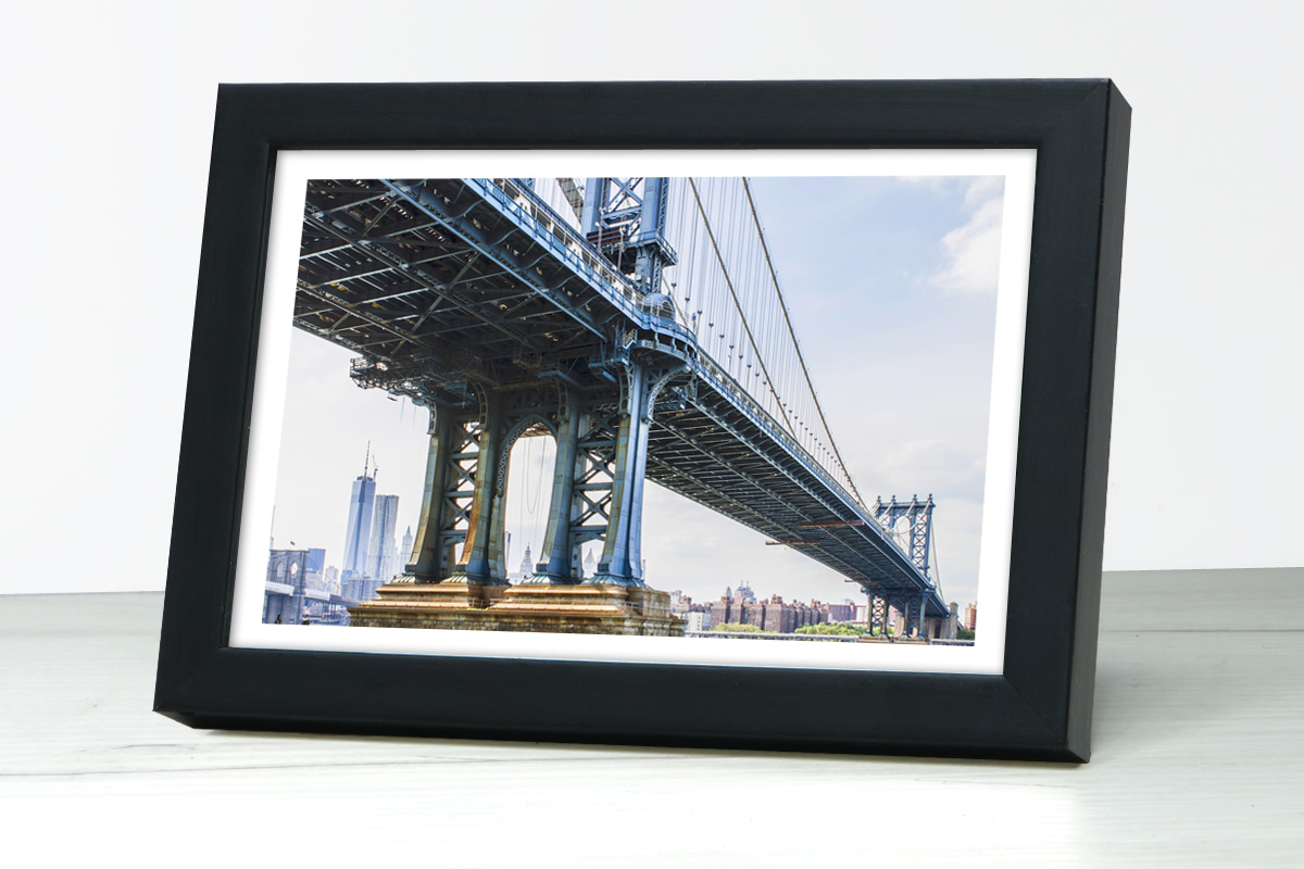 WIR BIETEN KOMPLETTE RAHMEN – sie enthalten Glas, eine Rückwand aus HDF und Aufhänger (kleinere Formate haben eine auf die HDF-Platte aufgesetzte Aufhängung, größere haben an der Platte angebrachte Aufhänger). Alle können hoch- und querformatig präsentiert werden. Produkte bis zur Größe 18×24 haben einen Aufsteller zum Hinstellen. Die Rahmen sichern wir mit Schutzfolie, zusätzlich verwenden wir ab Formaten von 21×30 Kartonecken.
