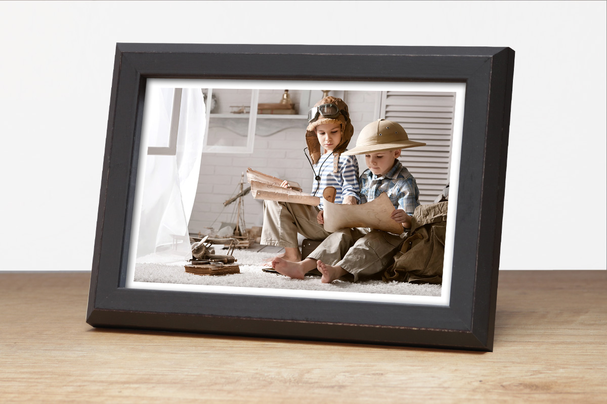 WIR BIETEN KOMPLETTE RAHMEN – sie enthalten Glas, eine Rückwand aus HDF und Aufhänger (kleinere Formate haben eine auf die HDF-Platte aufgesetzte Aufhängung, größere haben an der Platte angebrachte Aufhänger). Alle können hoch- und querformatig präsentiert werden. Produkte bis zur Größe 18×24 haben einen Aufsteller zum Hinstellen. Die Rahmen sichern wir mit Schutzfolie, zusätzlich verwenden wir ab Formaten von 21×30 Kartonecken.