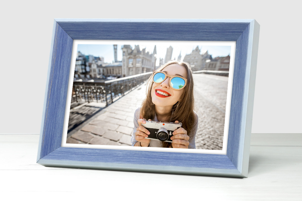 WIR BIETEN KOMPLETTE RAHMEN – sie enthalten Glas, eine Rückwand aus HDF und Aufhänger (kleinere Formate haben eine auf die HDF-Platte aufgesetzte Aufhängung, größere haben an der Platte angebrachte Aufhänger). Alle können hoch- und querformatig präsentiert werden. Produkte bis zur Größe 18×24 haben einen Aufsteller zum Hinstellen. Die Rahmen sichern wir mit Schutzfolie, zusätzlich verwenden wir ab Formaten von 21×30 Kartonecken.